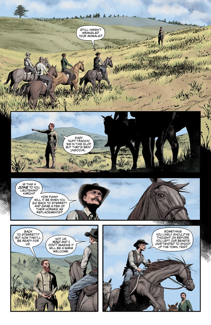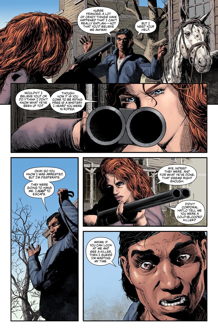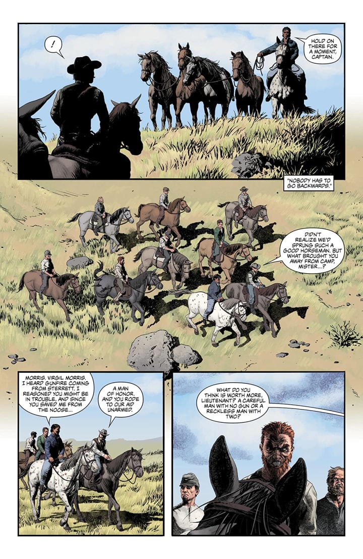 Wow each issue just doesn’t seem to slow down. I’m not complaining because the fact that this is full steam ahead is just what the doctor ordered. Even when its time for some slower character development time it still has this charged excitement to it that doesn’t slow things down it just keeps ramping it up and i’m not sure how John is able to accomplish this but I’ll be damned if he isn’t just killing it with the writing here. Virgil may be an Native American but being raised as he was means it’s only natural that he’s fighting for the Union. Though with his heritage being what it is that this should turn into an historical western horror thriller is the most amazing combination there is.