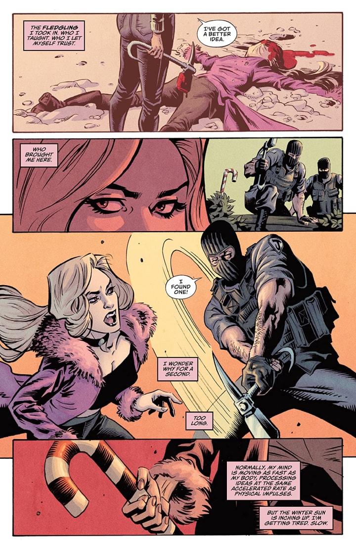 Oh what an amazing issue this is. While the hunters finally get the all clear to launch a full on assault the court is caught up in its own drama as they try to survive the onslaught. I have to admit that there is a lot more going on here than I would have thought possible and it just goes to show how magnificent of a writer Tim is. Calder and how own machinations hadn’t foreseen an attack of this magnitude and the court itself with all their spies and intelligence didn’t even have something like this on their radar and that to me is more surprising than anything else.