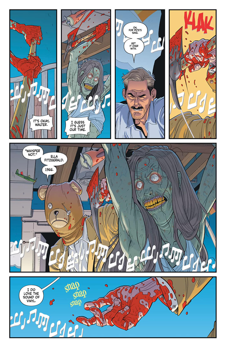 Dennis’ regular meetings with Walter have forged a friendship that one may value more than the other but I can guarantee you now that the tides will change after this story is over. Dennis will indeed find himself indebted to the serial killer in ways he never would have thought possible. This is so smartly written with great dialogue, humour and creepy bits that are brought to life through the artwork with such aplomb. Vinyl will be unlike anything you could possibly expect it to be and it will turn your summer into something spectacular.