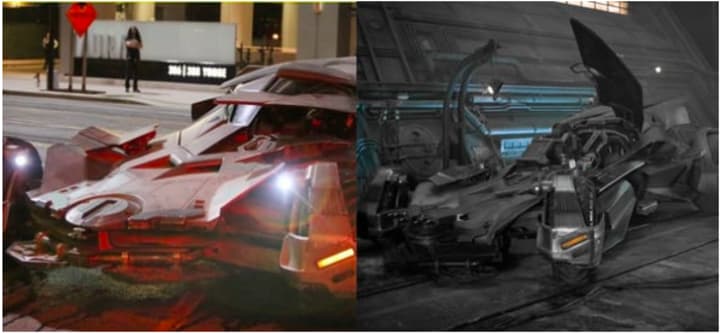 In an interesting detail, the Batmobile in Suicide Squad seems to be lacking the deadly weapons we saw in Batman v Superman - compare and contrast the two Batmobiles below: