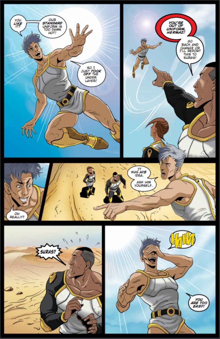 I love the creativity and imagination we see here and when Hermaz shows us without the under layer of his uniform well it just feels right. This has that mixture of fantasy, history, fables and superheroes so that it creates it own unique niche in the market. There’s also this great humour where it is serious but doesn’t take itself seriously that is completely missing in today’s market and I gotta say this is really one of those feel good series that you’ll fall in love with.