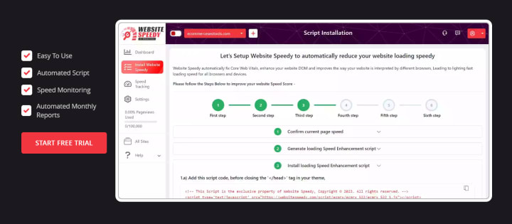 • Website speed optimization suggestions: Website Speedy provides suggestions and easy to add a script that helps to improve your website's loading speed.