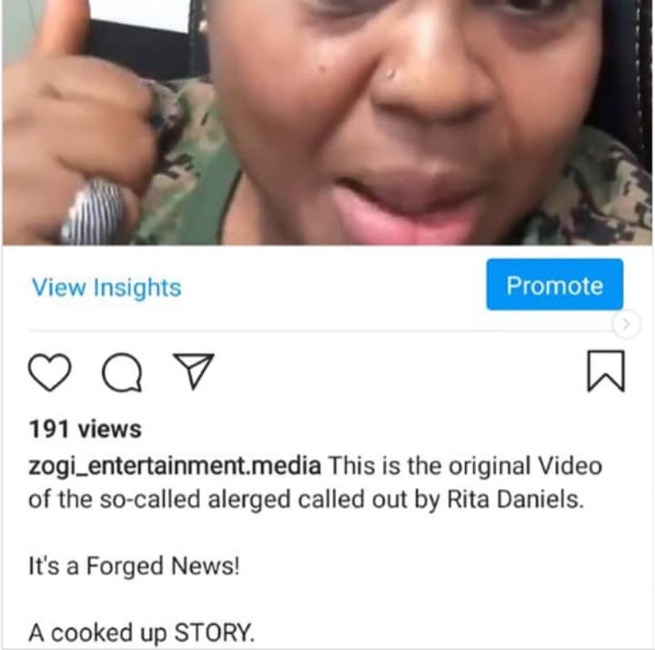 Rita Daniels then took to Instagram to address the claims of all these allegations. She posted the picture below with the caption: