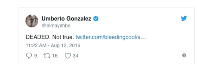 That being said, it's best to be cautious with these rumors. I recommend going by what I call the 'Rule of Three' - when three sources independently state the rumor, it can be considered true. Bleeding Cool's word isn't quite enough for me. Umberto Gonzalez, of Heroic Hollywood fame, wasn't impressed by Bleeding Cool's rumor: