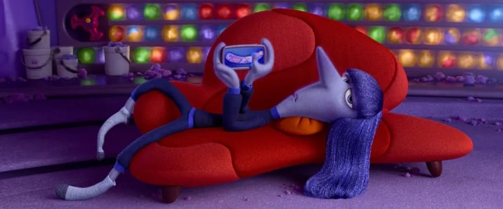 Ennui always acts like she doesn't care about anything. From her expression, you can see that she is always bored and sleepy. If you ask Ennui what she wants most, she probably wants a sofa to lie on and everything can be controlled by her mobile phone. Ennui represents Riley's negative emotions when she is bored or frustrated. She makes Riley lose interest and motivation in the things around her. However, this emotion is also part of the growth process, prompting Riley to reflect and adjust her mindset.