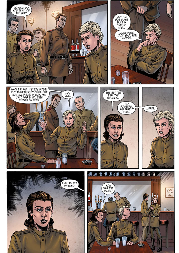I have to admit that this is one hell of a story and it’s nice to see that we’re getting a perspective from the Russian point of view. All too often all we see is American or British forces during WWII so that these women played such a vital role in the war effort for Mother Russia are finally getting the respect and attention they deserve is a wonderful thing. Also I don’t know much about them so I have no idea how much of this is based on fact or just assumption as the characterisation which i’ll get into later is mighty strong it does make you wonder about these folks to the point of looking them up to see who they were in real life.