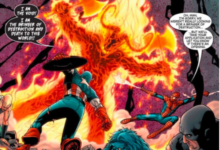 For all that, though, there's something fascinating about the concept. Many Marvel supervillains are essentially mirror-images of Marvel superheroes; Iron Man fights the Iron Monger, Ant-Man takes on Yellowjacket, the Red Skull is the Nazi supersoldier to face Captain America. The Sentry, though, is in truth the yin to his own yang; for all the good he does, it's balanced out in evil. That's an absolutely fascinating philosophical concept, and it would be really interesting to see that kind of character explored.