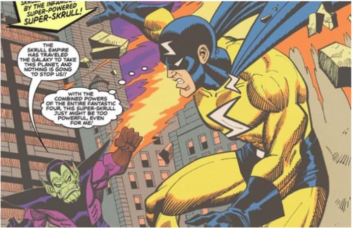 Let me give you a sense of the scale of his power: Spider-Man recalls him fighting Galactus, the Devourer of Worlds, to a stalemate. Not with scientific gizmos, as is usually the case with the Fantastic Four, but by virtue of his own might. His powerset - which includes energy manipulation, teleportation, reality manipulation, flight, and general superhuman strength, speed, and resistance to injury - appears to be unlimited. Check out this scene from World War Hulk.