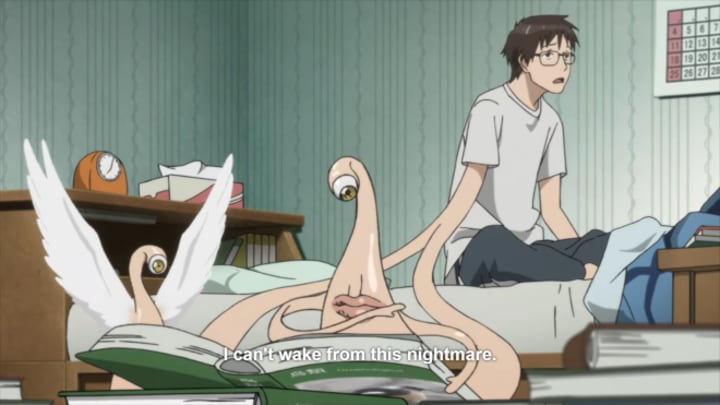 Our main character’s name is Shinichi. We’re introduced to him as this charmingly dorky, slightly awkward teenager in his senior year of high school in Japan. He has a loving father and mother, a close friend/crush named Murano, and an otherwise completely normal life.