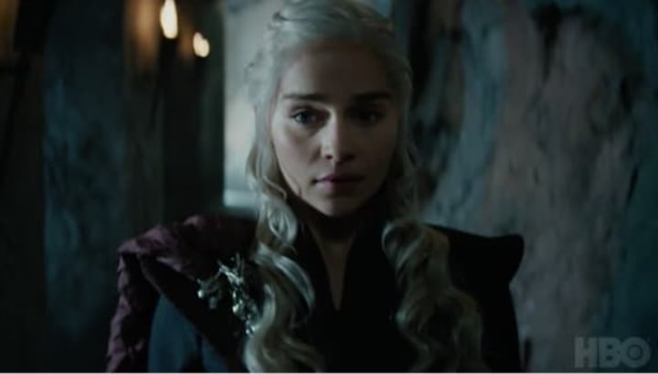 There are only three major contenders left in the great Game of Thrones, and they're clearly moving towards the endgame. The focus of this teaser is on the battle of wills between these three figures: Jon Snow, Khaleesi Daenerys Targaryen and Cersei Lannister. The teaser is thrilling, focusing in on each of their faces, drawing us into the tension of the moment.