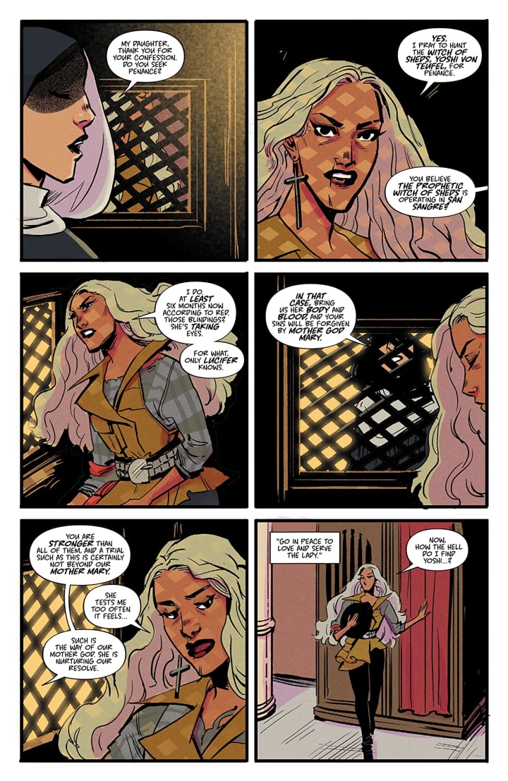 The Hounds of Love are hunting. Next stop: San Sangre, a city of blood, faith, and bad vibes. The stomping grounds of curse-hunters and gunslingers. But with a special kind of horror watching from the utility sheds, do our vampire biker dirtbags know what they're getting themselves into? Find out in Witchblood Chapter 3: The Darkness in the Sheds of Town!