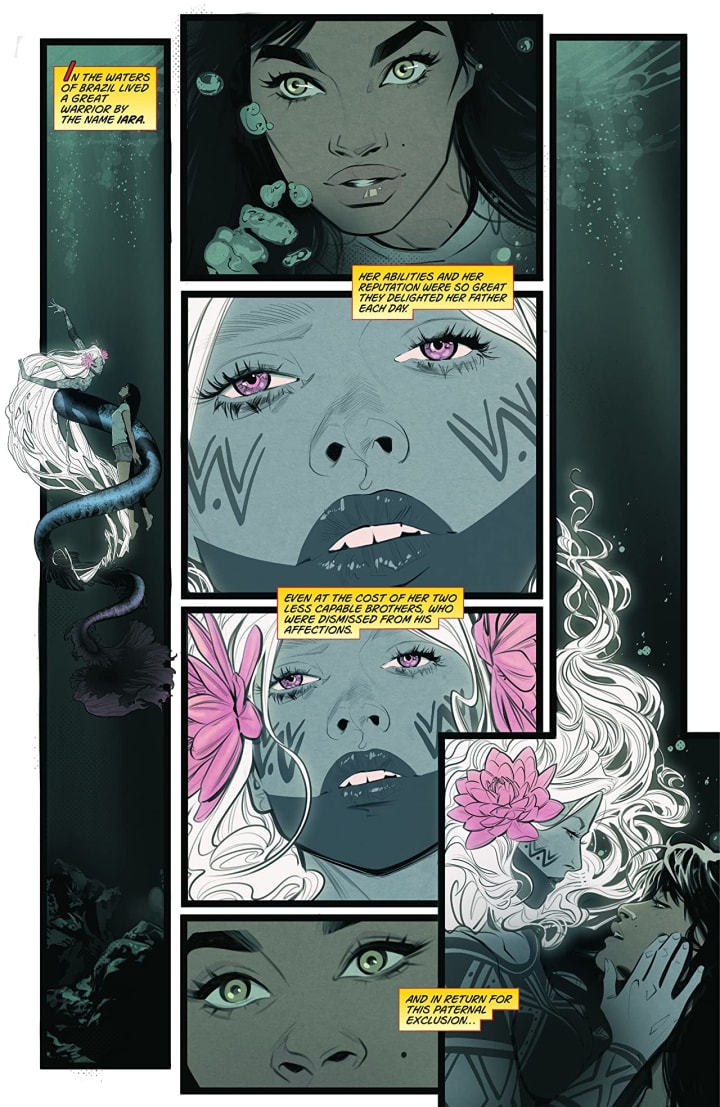 After receiving a sacred gift from the gods of Brazil, our hero seems destined for great things. Little does she know, another pantheon has been watching her as well. Hera, queen of the Greek gods, has chosen Yara to become her latest champion. But what need does the goddess have for a warrior of her own? Find out in this stirring second issue!