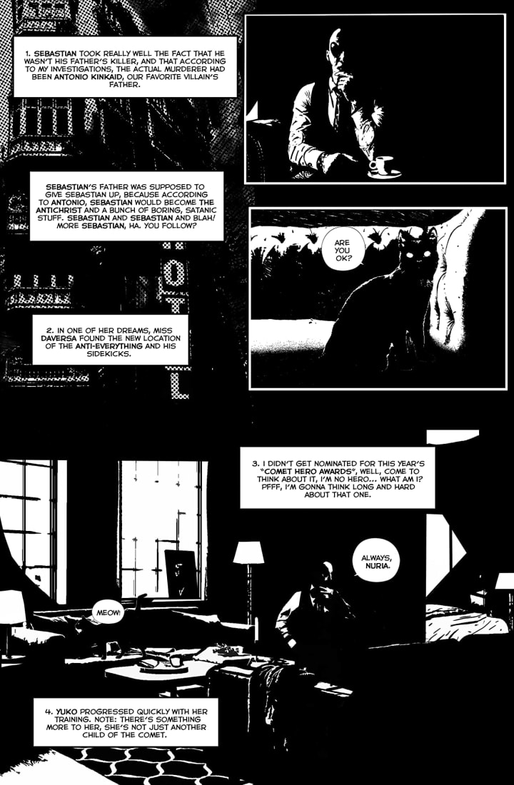 In this issue we’ll learn the story of how the Anti-Everything eliminated the Weird8, the heroes of Kolosimo, while Yuko tells of her first encounter with the Anti-Everything and his henchmen. But while Sage teaches them how to handle their powers, The Anti-Everything enacts his plan to collect all the energy he can to face Yuko and Sebastian.