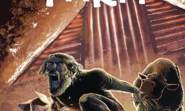 The interiors here really are a great classic comic book style and it compliments the story. The linework that we see with its varying weights and techniques utilised to create the detail work is wonderful to see. This story because of its setting means that backgrounds are integral and become a part or character in and of itself in the book. They also bring us this great depth perception, sense of scale and the overall sense of size and scope to the story. The creativity and imagination in bringing the creatures of the island to life is sensational stuff. The utilisation of the page layouts and how we see the angles and perspective in the panels show a remarkably talented eye for storytelling. The colour work is sensational. The way that the various hues and tones within the colours are utilised to create the shading, highlights and shadow work show a really superb eye for how colour works.