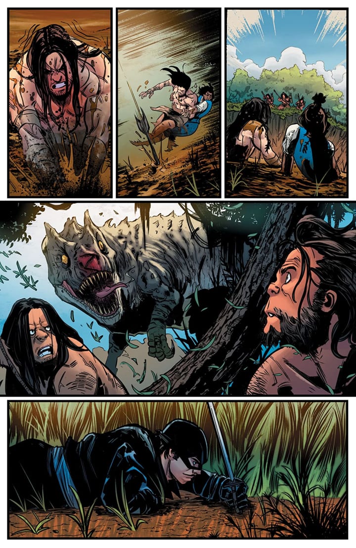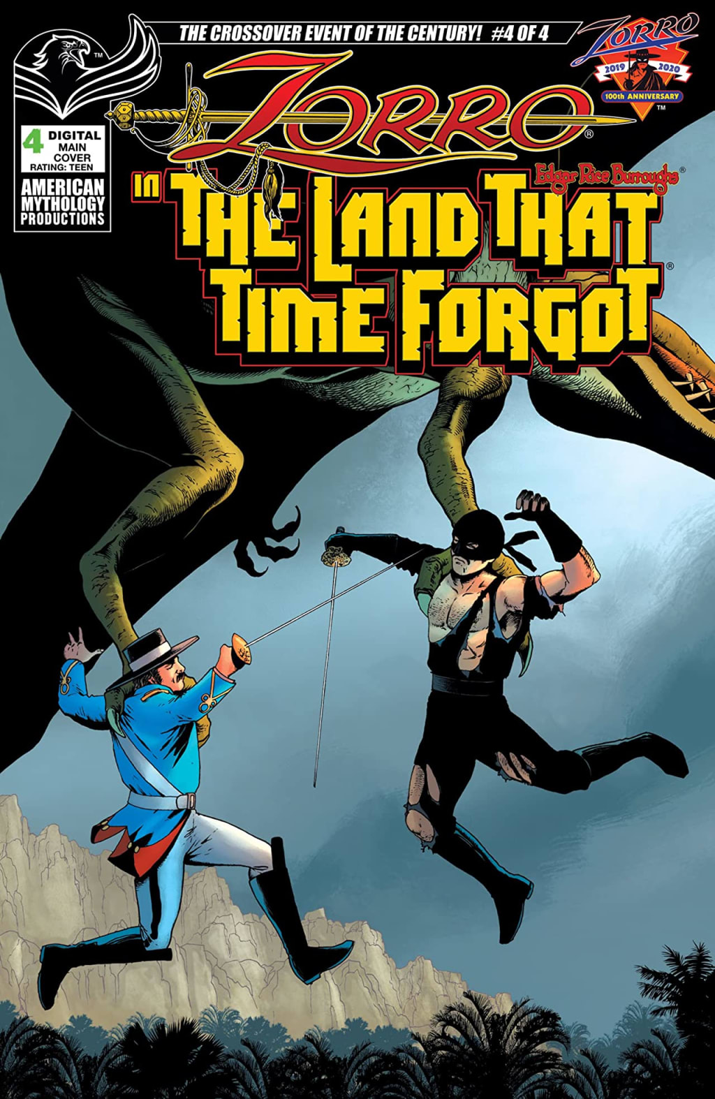 The most astounding crossover event of the year comes to a thunderous conclusion! As they battle for their lives against the prehistoric horrors of the lost world of Edgar Rice Burroughs' Caprona, Zorro, Captain Caproni, and Marina must use all of their wits and survival skills if they hope to escape the savage continent, because not only does Caprona want to kill them, so does the evil Captain Quintada and his troops, who seek their deaths in order to claim the lost world for the Spanish Empire. Rampaging dinosaurs and swashbuckling thrills abound in this incredible mini-series event that fans have demanded for decades!