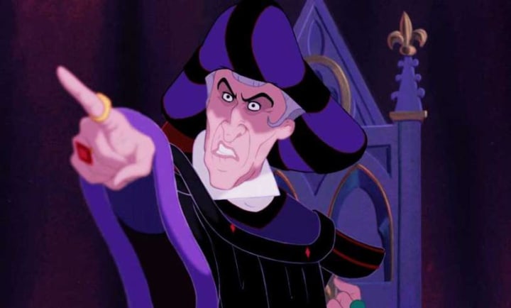 Claude Frollo deserves the title of the vilest villain in Disney history. He raises a baby that he almost killed for being the child of gypsies, and he manipulates that child for years until he reaches adulthood. Quasimodo, the child, meets a young woman named Esmeralda, who becomes his friend. Frollo becomes obsessed with her, and even gets creepy with her during one scene that I can't believe was put in a Disney movie.
