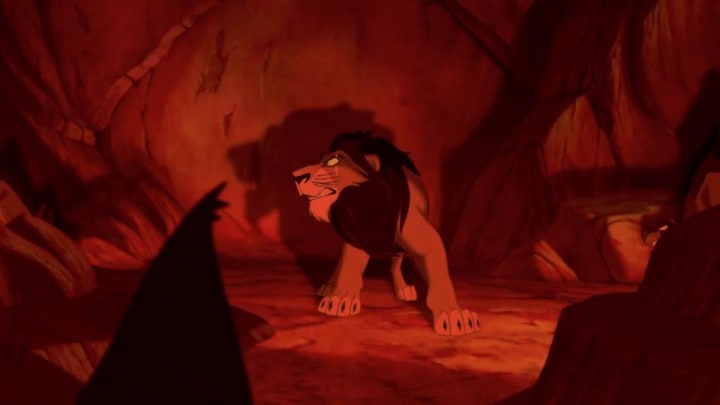 Fun fact, Gaston from Beauty and the Beast was supposed to get Scar's death. I believe he was supposed to get ripped apart by wolves. I'm curious why his death was changed up, but I'm planning to write about Gaston sometime in the future, so I'll save that topic for another day.