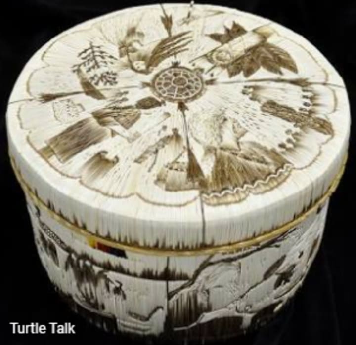 Sustenance economics, my parents called this type of living, resilience and survival economics. Where there was a need there was a way to meet that need. Many Native American crafters use various materials such as birch bark to "make" a living. I am proud to introduce you to my two cousins, Yvonne Keshick-Walker and Arnold Walker who are Birch Bark workers. They use their skills and nature to craft wonderful pieces of quill boxes and quill work.