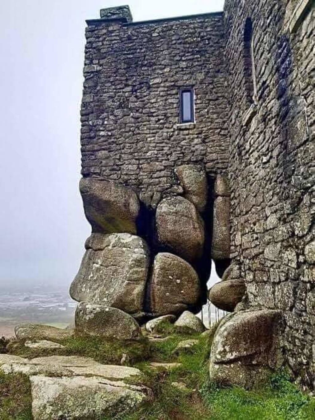 One of the most striking features of Carn Brea Castle is its unusual, almost whimsical architectural style. Constructed from the same gray granite as the hillside on which it stands, the castle appears to emerge naturally from the rocks, as if it is part of the landscape itself. Its irregular, asymmetric design adds to this impression, with towers and turrets that rise at unexpected angles. The design, though rough around the edges, is perfectly suited to withstand the hill’s harsh, windy conditions, which are a common feature of Cornwall’s moorland areas.