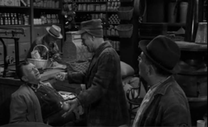 In the Twilight Zone episode Hocus Pocus and Mr. Frisbie the action begins in a store with a pot-bellied stove and several men sitting around and talking. One individual told me that KKK meetings to harm African Americans may have taken place in such settings.
