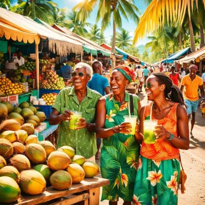 "Come buy you yam, cocoa, dashine and bammies". "Sweet water coconuts to quench you thirst"! They called out in the Caribbean patois.