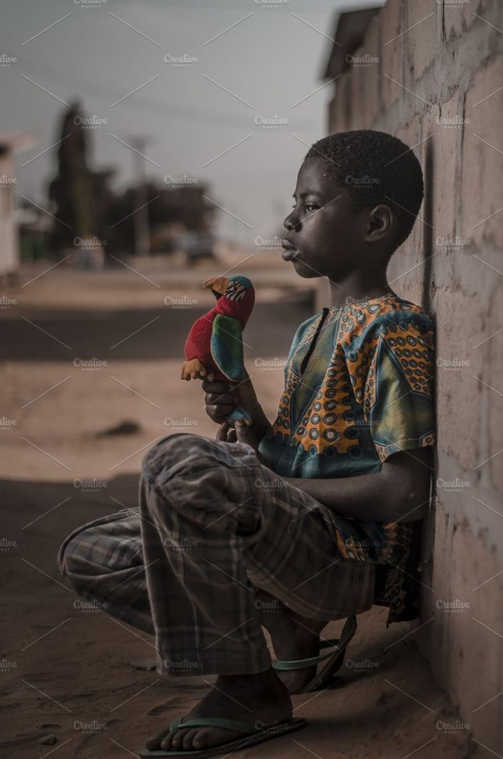 Once upon a time, in a small town nestled in the heart of Africa, lived a young boy named Malik. He was an inquisitive and adventurous soul, always eager to explore the world beyond his village. Malik's ebony skin glistened under the warm African sun, and his eyes sparkled with a boundless curiosity.