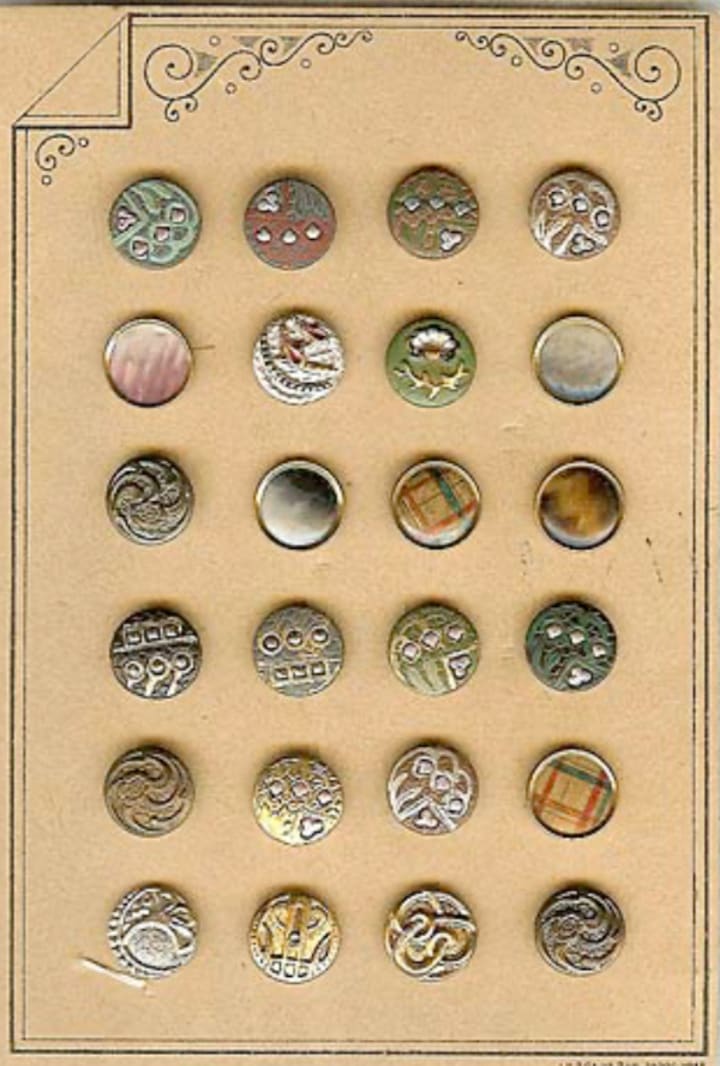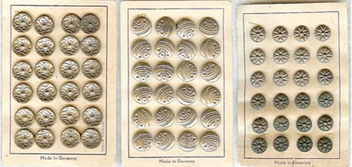 Then buttons were made in Peterswald by four Schonbach brothers from samples obtained in France and copied. No-one knew the name Peterswald, so the buttons were sold under the name Paris.
