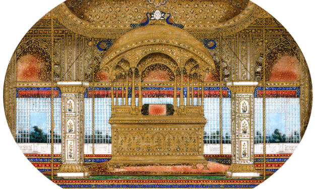 What Was the Peacock Throne? The Peacock Throne was completed around 1635 CE and placed in the Mughal imperial court at Delhi. It was constructed almost entirely of solid gold and covered with some of the most valuable gemstones known to humanity. At its center stood two jewel-encrusted golden peacocks, their tails raised high and spread wide, symbolizing royalty, immortality, and divine authority.