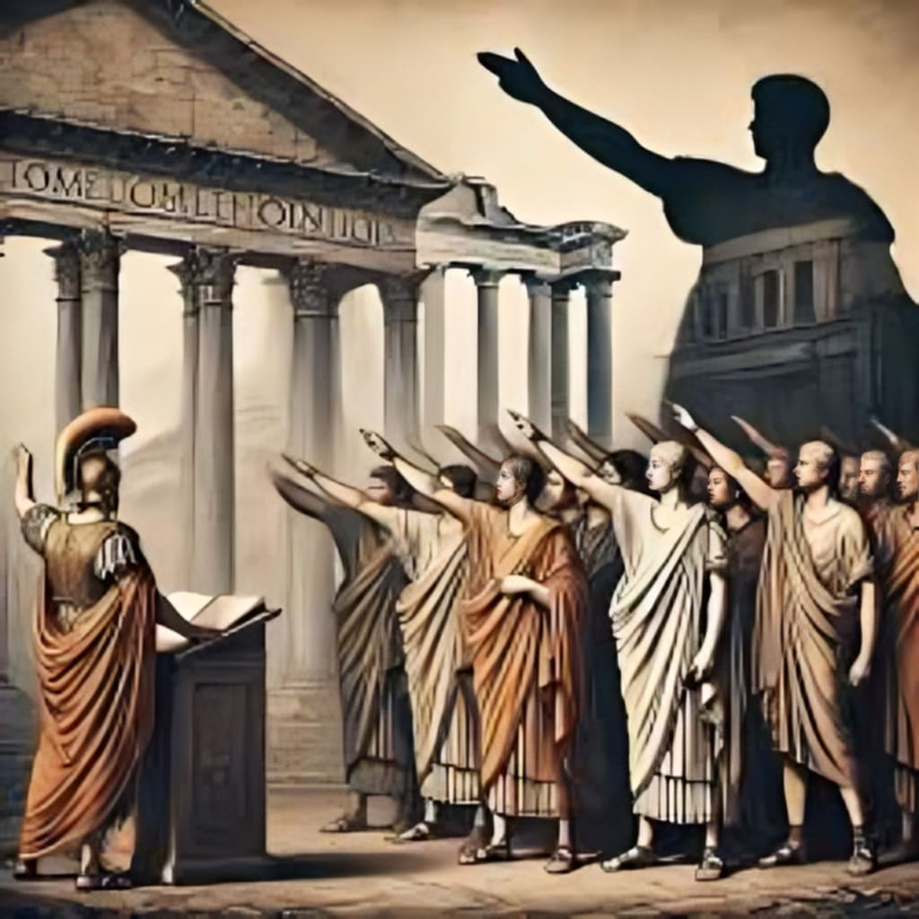 The Roman salute became popular in the 19th and early 20th centuries through art and theater. It was used in plays and operas about ancient Rome to represent loyalty and respect. For example, in paintings and stage performances depicting Roman scenes, characters often raised their arms to greet each other or to address an audience.