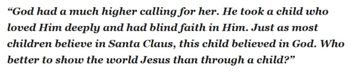 Above all, Michelle spoke of her daughter’s deep faith, which became a source of comfort for the family after the tragedy. She remarked: