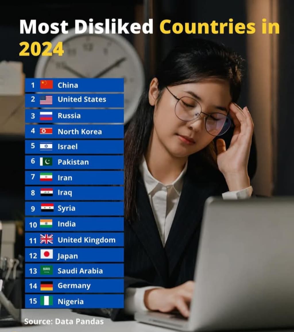 “From Superpowers to Struggling States: What Drives Global Dislike Toward These 15 Nations in 2024?”