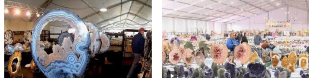 The show that started it all is the Tucson Gem and Mineral show at the Convention Center in downtown Tucson. This is a retail show, but like any show, some vendors offer wholesale to their customers depending on their company policies and requirements. This is where you get see many specimens in showcases.