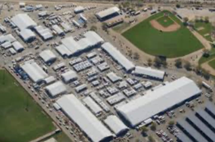 G & LW also has a simultaneous show at the Gem Mall in South Tucson, in 3 large tents with 3,000 parking spaces available, and of course the shuttle bus stops there too. Same dates as the Rodeway, some of the same vendors with second booths; this show is not so crowded and crazied, but probably the best up and coming show in Tucson.