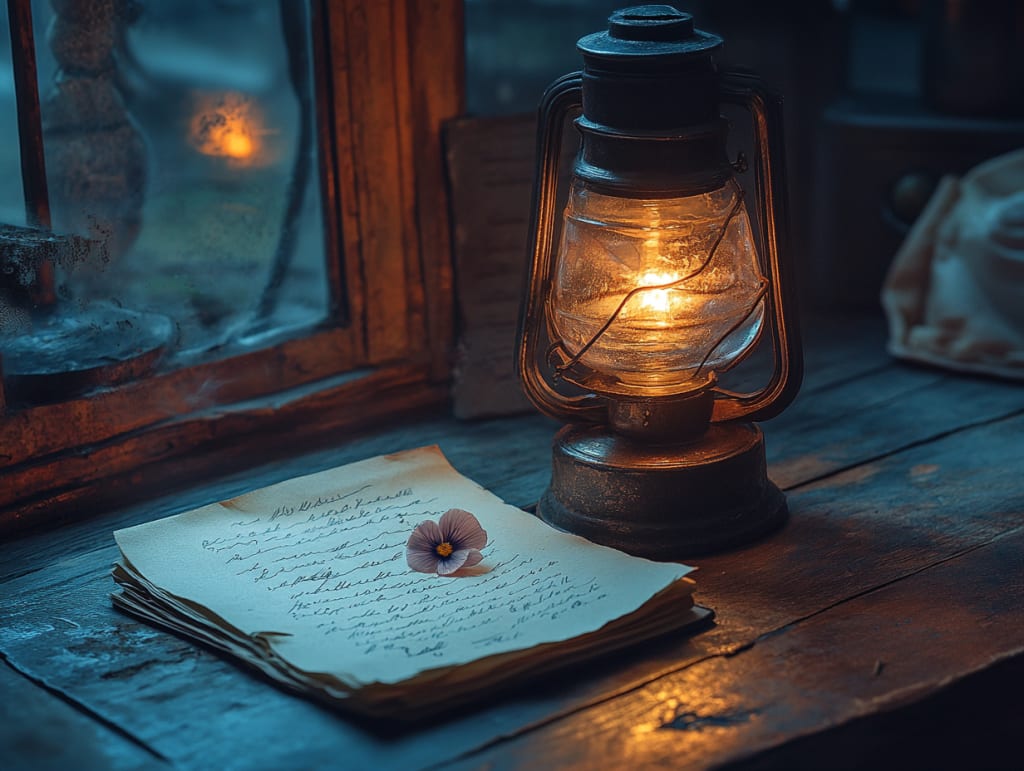 I received your letter two nights ago, read it by lantern light until the wick burned low. The violet you sent has dried and curled at the edges, but I keep it in my pocket, running my fingers over it when the house is too quiet.
