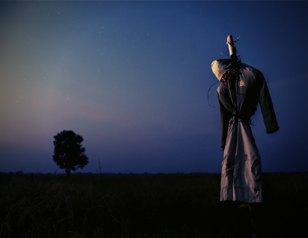 The outside world was deathly quiet, even the persistent rustling of the changing leaves that had aggravated Mrs. Pikeman all week had fallen silent. The rain had come and gone, leaving a wet-earth smell and water droplets hiding between screens and windowpanes. It was a cool night in October, the scarecrow in the distance wavered slightly, its silhouette illuminated by the sharp light above. Scarecrow Run, the road her new home had been built upon, was known for the creepy figure at the crossroads all throughout town. The farmland it had once guarded taken over by industry and greed. She liked its silly face. She had named it Charlie. The building had that smokey smell that came alongside a heater being turned on for the first time. The apartment complex stood silent; businessmen out of town, their housewives asleep, children tucked in. Not a single light illuminating any of the windows. A singular pumpkin smiled against a dying candle on the porch next door. It was as still as a graveyard out there. Quiet Vale Apartments kept true to its namesake.