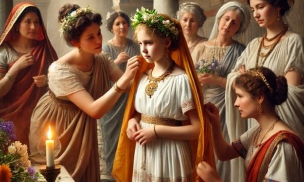 In the dimly lit room a frail young woman sat on the floor her hands and feet chained. Her eyes were wide with fear.