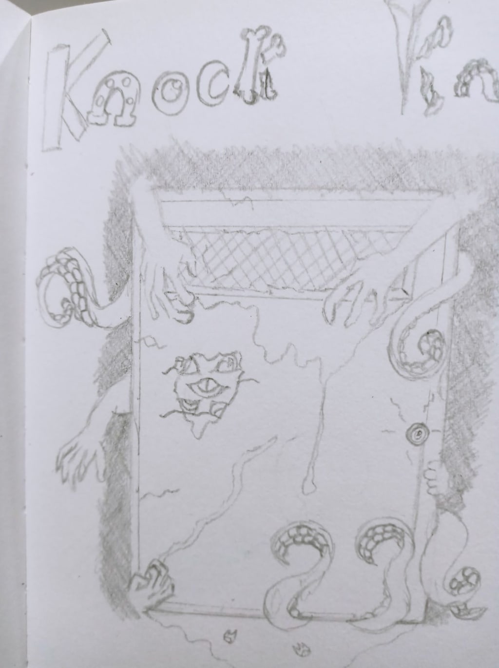 Figuring the person had left, the male turned around to get back to his girlfriend. Just as they started making out again, there were two knocks at the door. They looked at the door. Knock knock. She told him to just ignore it. They went back to making out. Knock knock. He began to take off her shirt. Knock knock. He lifted her to be on his lap. Knock knock. She looked over and saw the doorknob moving. She jumped up and ran upstairs screaming. He got up, asking why she ran. She expressed concern for being watched from the window. He looked over and saw nothing. He tried to tell her that but she refused to go back downstairs at the moment. He cursed at the door and blamed it for ruining the moment. Knock. Knock. Feeling like someone was staring at him through the door, he slowly put on clothes and made his way over to the door. Knock. Knock. He reached for the doorknob. His girlfriend’s phone started ringing. Slightly startled, he jumped. He saw it was her dad calling. Everything went quiet. He put her phone on silent. The knocking stopped. There wasn’t even a wind. He went upstairs in an attempt to continue what they started.