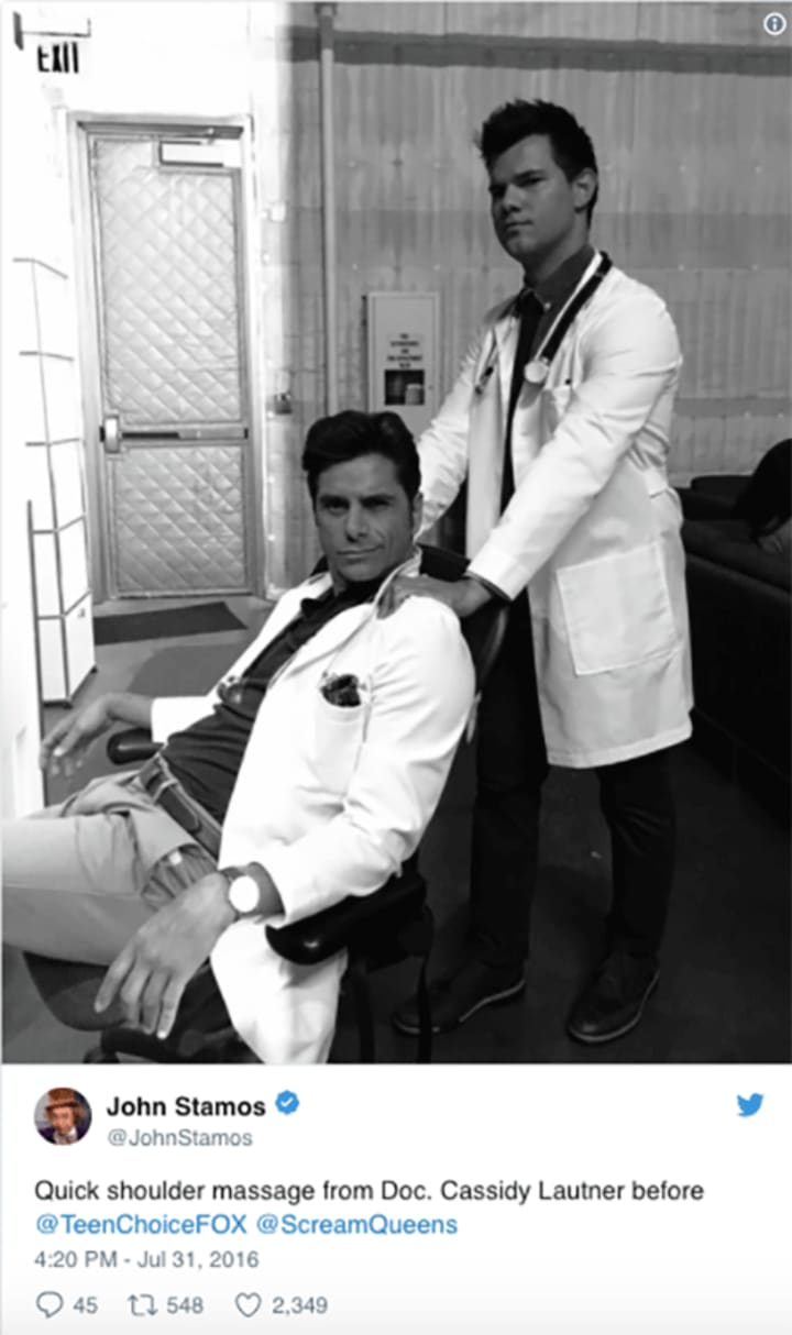 However, it isn't all girl power, as this year there are certainly more 'scream kings'. Lautner, Stamos and Haynes will be joining Glen Powell's Chad Radwell, who is back for more blood. Sadly Nick Jonas won't be returning as the season's man-candy, so I guess we will just have to do ogling Lautner - is he this season's McDreamy?
