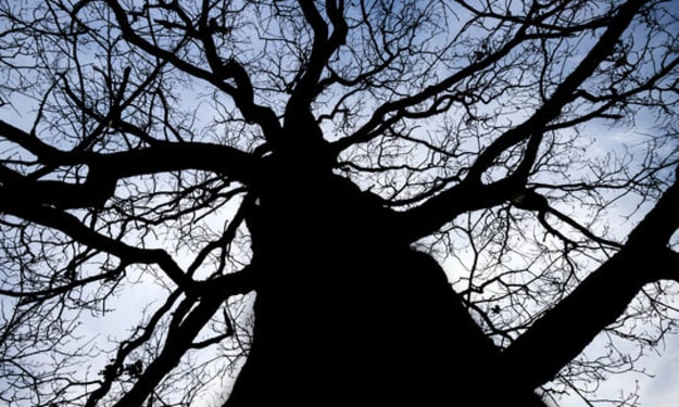 We mimicked his actions innocently, standing below the trees and shooing away the birds that weren't there. "fhurrr! fhurrrr! fhurrrr!”.Our shrieky voices and giggles echoed. It was all fun until my uncle started aggressively circling below the same naked branch where the owl had been. He stared at it with a maddening look. He never did blink once, and never did he rest his arms. His eyes were all red, and so was his face. He cursed and spat at something visible only to him.