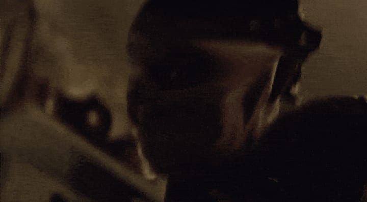 Cheap thrills and creepy crawlies are emphasized in a scene of a giant humanoid spider. Cooper is stalked by an entity that combines both his arachnophobia and trauma from a childhood bully. "Playtest" is on a par with Cabin in the Woods for creepy shit to come crawling out of the woodwork, and Spider-Man creatures wouldn't look out of place in one of the film's demonic holding cells.