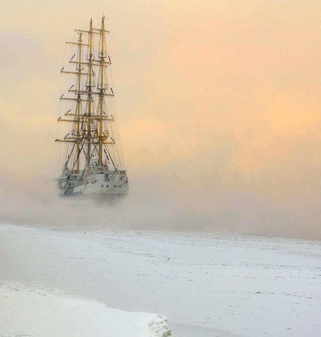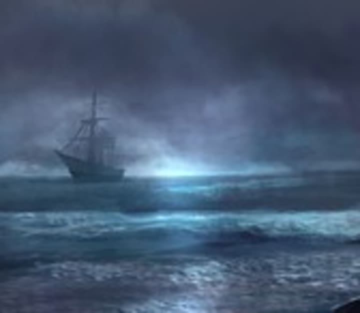 Everyone went topside, couldn't see much through the fog. But about an hour later the sun began to shine, Dave noticed a silhouette of a ship on the horizon. It looked like a pirate ship from long ago.