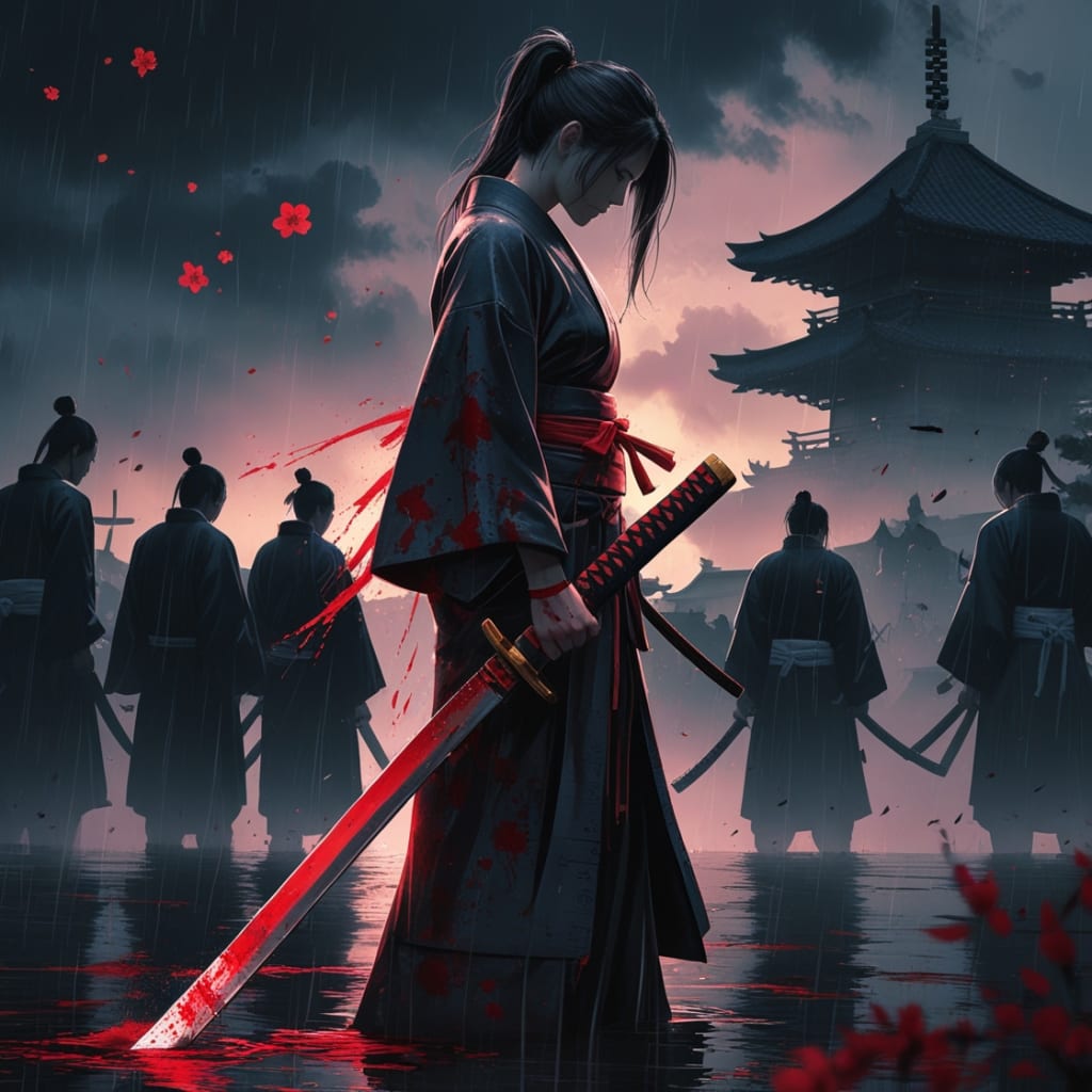 She came on the eleventh anniversary of the massacre. Dressed in white, the color of mourning in her land. Her katana—"Sora-no-Tenshi", the Angel of the Sky—was forged from the same steel as her father’s final blade.