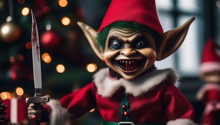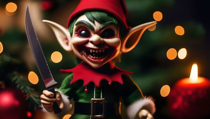 "No need to worry, little thing." Chuckles told her while standing to his feet, then taking slow and deliberate steps toward her. "You see, this here toy isn't for you. No no no...." He trailed his finger along the edge of the blade. "Then why are you holding it?" She asked with a tremble in her voice. "Well you see there Callie, I'm a very special kind of elf, A Naughty elf to be exact." "Because, you're naughty?" Callie asked. "He sat directly in front of her, crossing his legs and placing his hat by his side. "I come from a very different part of the North Pole. You see, Santa has his elves to watch the children who are naughty and nice, and they are the ones who make his naughty and nice list for all the kids on Christmas. Well, there is a very special group of elves, just a few select of us, we are. Our purpose is to find the naughty parents in the world, and well, to play a little game."