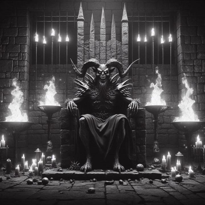 He finally made it to the end of the ominous corridor. There, he stood at a twenty-foot double door. The ancient entrance was carved with a demonic figure. He nervously pushed the door open, knowing exactly where he was and the evil that awaited him on the other side.