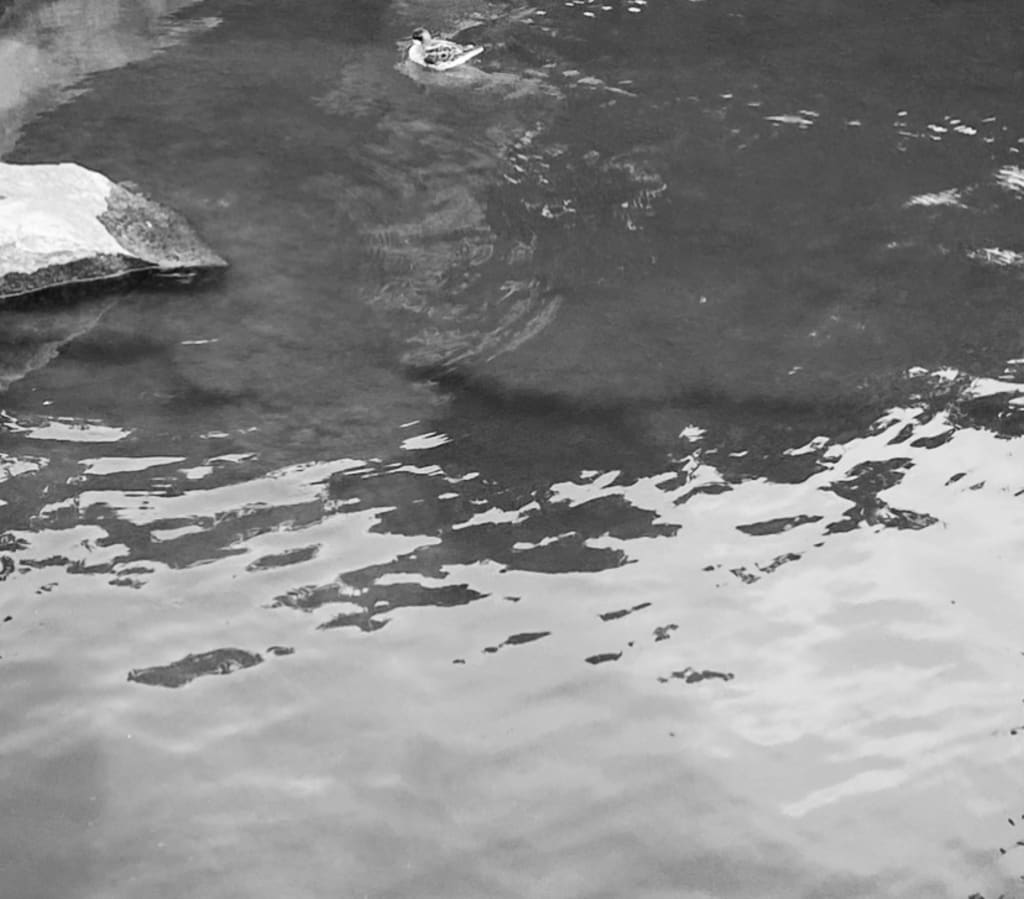 That’s when the stranger--in a flash--ran a blade he’d been concealing over my throat. I could feel it; the cold steel, the warm blood, the overwhelming sensation of dying. I reached up to my neck… only to find that none of that had actually happened. Even the reflection in the water had completely returned to normal. I was standing alone, save for a coot skimming across the surface towards an old woman who was throwing bread further down.