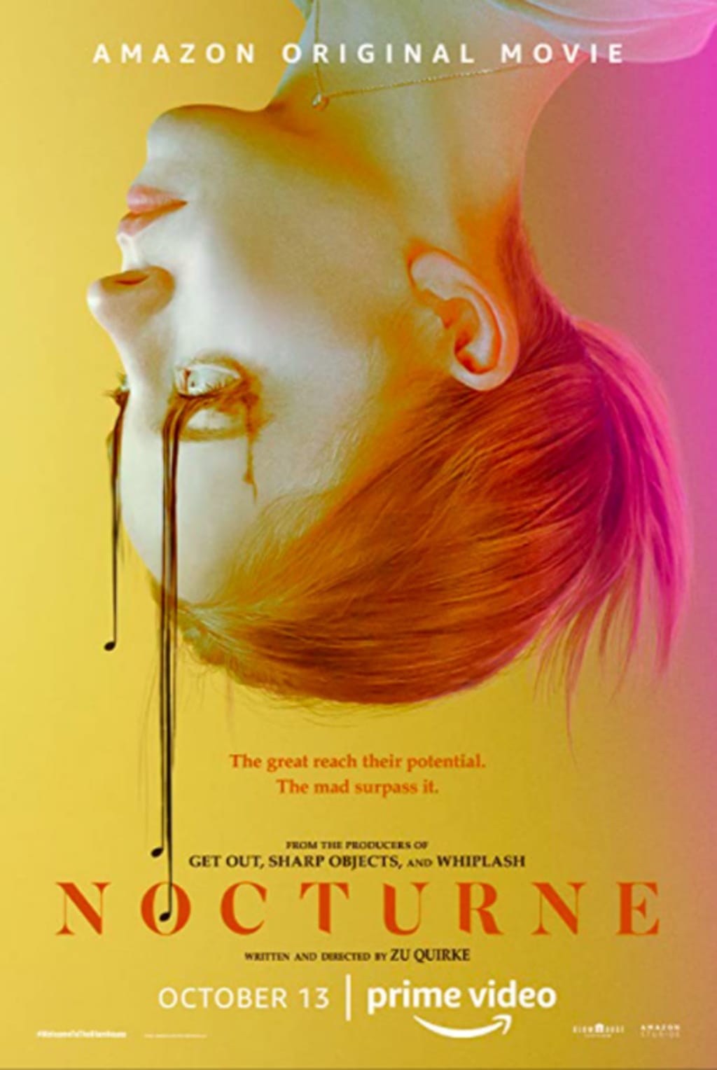 I saw and enjoyed Nocturne last night, the fourth of four horror movies by Blumhouse on Amazon Prime Video, which four themselves are the first installment in a larger series to continue in 2021. Like the first three Blumhouse movies I saw -- The Lie, Black Box, and Evil Eye -- Nocturne is a tightly drawn family drama. But Nocturne has the additional depth of being situated in music.