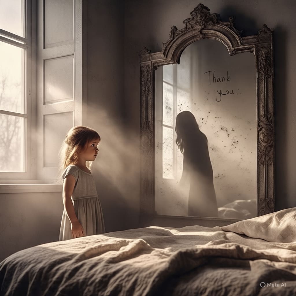 My daughter mentioned a lady in her room. But that room had been locked for years. When we opened it, the dust was thick — and on the mirror, a single word was written with a finger: “Thank you.