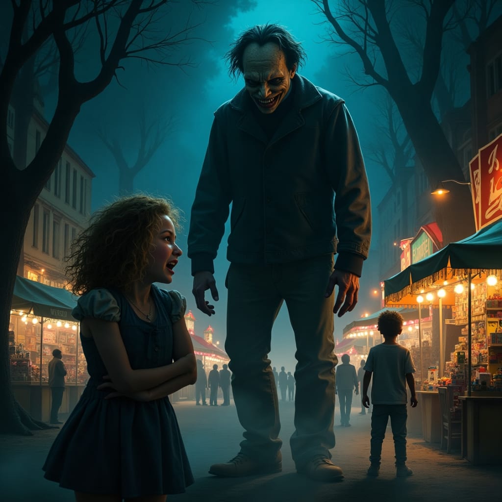 It was the first day of the yearly Fair in the small, peaceful village of Hollow Creek. Despite the eerie stories that seemed to be circulating about the fair, people traveled from far and wide to attend. The rides, cotton candy, clowns, and dazzling lights were all adored by the kids. However, the elder residents were more wary, muttering stories about weird happenings that no one outside the fairgrounds dared to discuss, about guests who had come and never returned, and about things that were invisible.