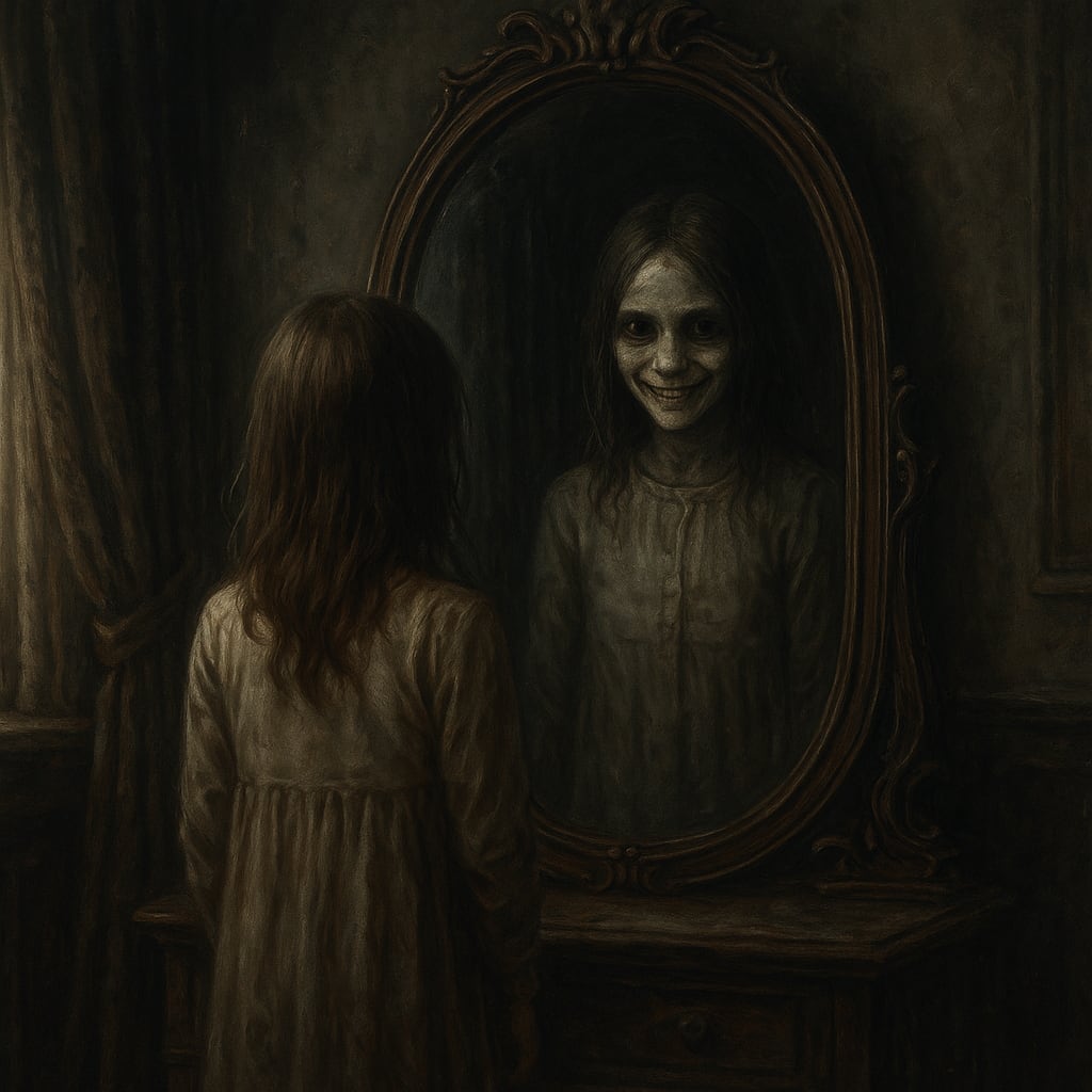 I stood completely still, holding my breath. My reflection stared back. But just as I was about to move—it smiled.