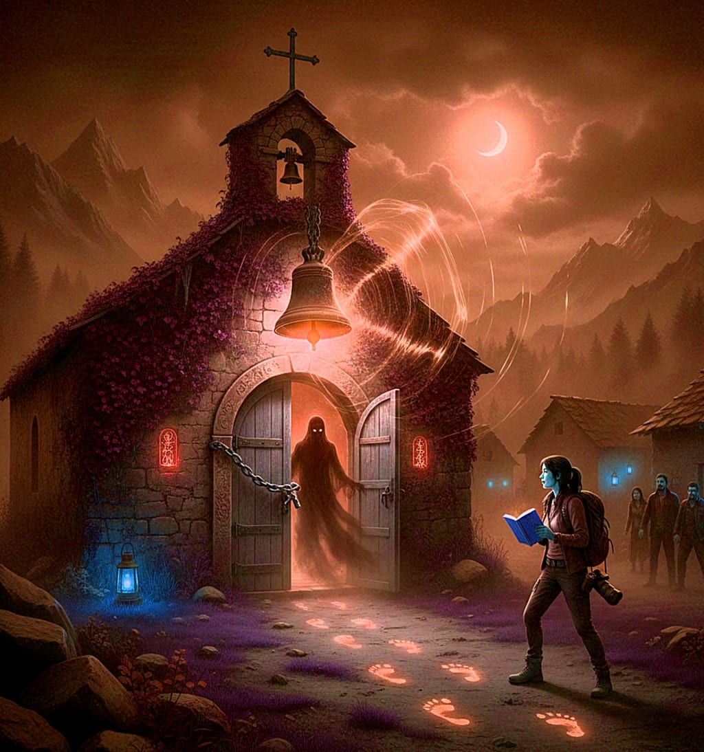 As Aaliya prepared to leave the mountain village, she glanced once more at the bell tower. For a moment—just a moment—she thought she saw a thin shadow move behind the window.